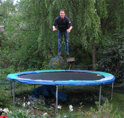 meine Kinder ein gutgefedertes Zimmertrampolin gekauft, auf dem